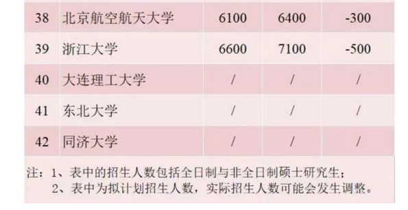 不少考生选择考研是出于“名校情结”,那名校的硕士研究生扩招人数就更值得关注了。以下是通过查找42所一流大学建设高校2018年和2019年的硕士研究生招生简章、招生计划、专业目录等资料,搜集到了其中39所一流大学建设高校近两年的计划招生人数。