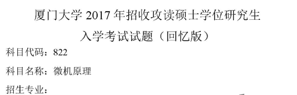 附件内容包含:2017年厦门大学822微机原理考研真题(回忆版)).pdf