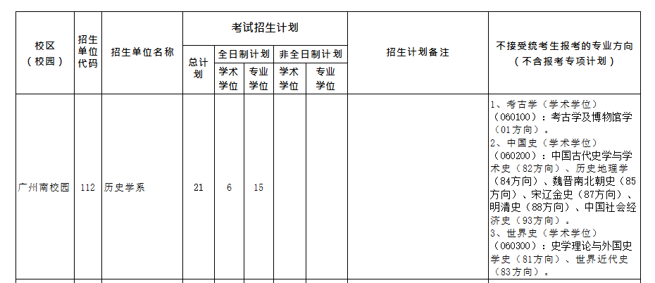 2019年:计划招生21人,总体招生人数不变,但学硕较去年减少3个名额,专硕增加3个名额;需要注意的是该院系不接受统考考生报考的专业方向,考古史和世界史依然不变,中国史中将18年的先秦史换成了中国社会经济史;意味着,今年中国史的先秦史方向可招收统考生,而中国社会经济史不接受统考考生报考。