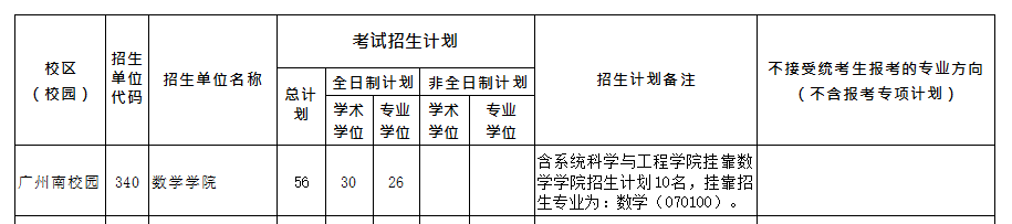 2019年:计划招生56人,其中包含系统科学与工程学院挂靠数学学院招生计划10名,挂靠招生专业为:数学(070100)。