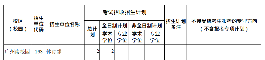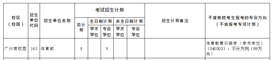2019年:计划招生8人,今年暂无学硕的招生计划,计划招生的8个名额皆为全日制专硕,体育教育训练学学硕不招收统考生;