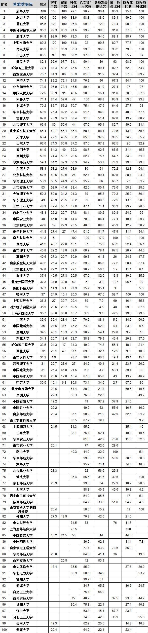 位于榜单前十的大学分别是清华大学、北京大学、复旦大学、中国科学技术大学、浙江大学、上海交通大学、南京大学、中山大学、武汉大学、哈尔滨工业大学。上述高校均是我国的重点院校,也是一流的名校,其中厦门大学仅排名在第二十三名。