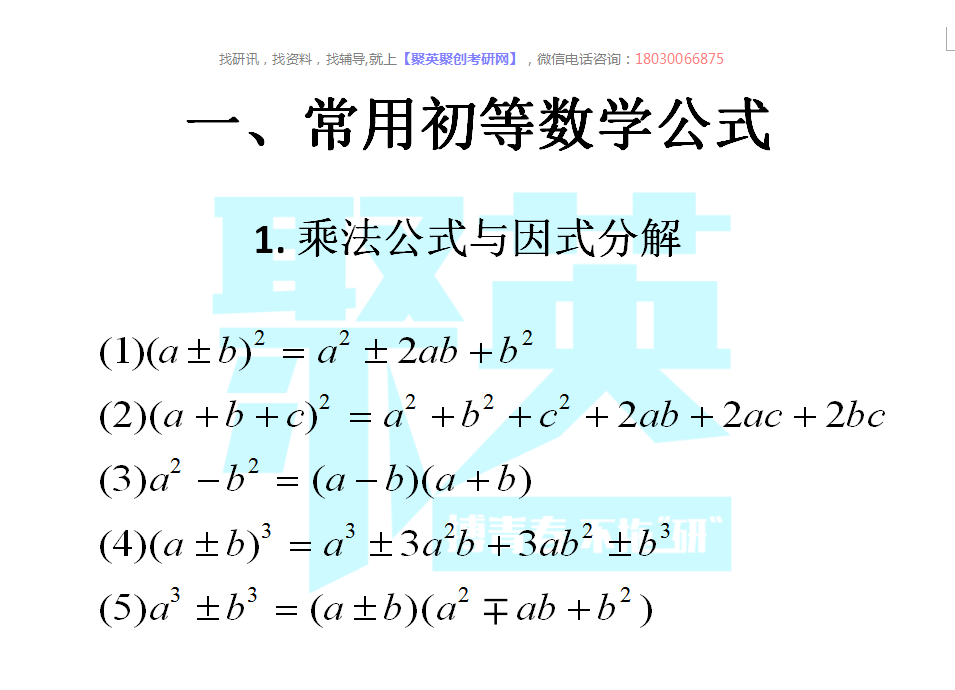 以上是聚创考研网为考生整理的"2019考研数学公式大全"的相关考研信息,希望对大家考研备考有所帮助! 备考过程中如有疑问,也可以添加老师微信juchuang911进行咨询。