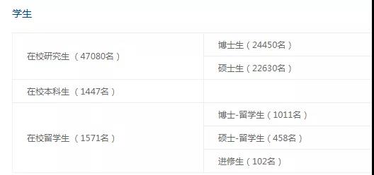 据学校官网统计的2017年数据显示,截止时间为9.30日的学生规模统计数据,在校研究生高达2.1万人,其中硕士研究生14532人,博士研究生7236人,在职攻读学位研究生有9127人。ESI发布的2018年3月排名数据显示,上海交通大学已有18个前百分之一学科、6个前千分之一学科、1个前万分之一学科。总排名在世界第143位,较之上期上升1位,国内高校第4位。