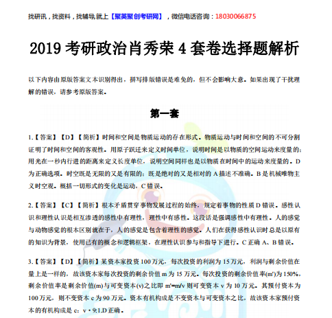 以上是聚创考研网为考生整理的"2019考研肖4选择题解析打印版整理"的相关考研信息,希望对大家考研备考有所帮助! 备考过程中如有疑问,也可以添加老师微信juchuang911进行咨询。