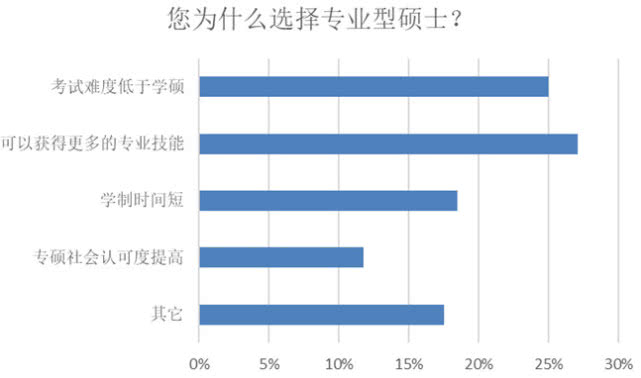 考生选择专业硕士首要原因是可以获得更多专业技能