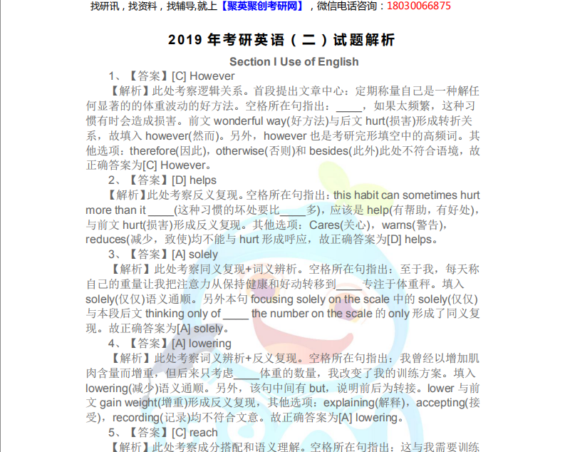 以上是聚创考研网为考生整理的"2019年考研英语(二)真题解析下载"的相关考研信息,希望对大家考研备考有所帮助! 备考过程中如有疑问,也可以添加老师微信juchuang911进行咨询。