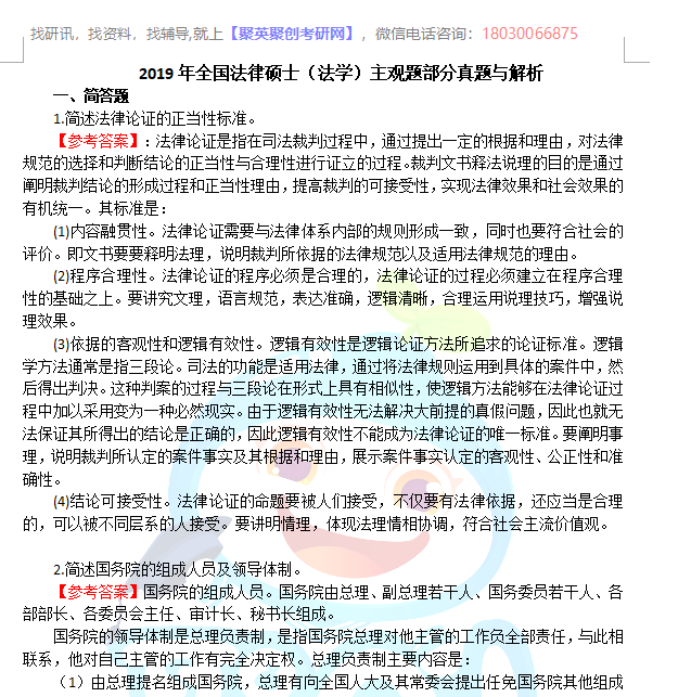 聚英考研网整理了2019年全国硕士研究生入学统一考试法律硕士(法学)真题+答案与解析,部分内容如下:更多内容请下载附件