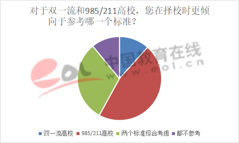 从考生择校标准来看,近5成的同学倾向于参考985/211高校标准,双一流和985/211高校两个标准都考虑的占比约31%,参考双一流高校的占比约11.6%。