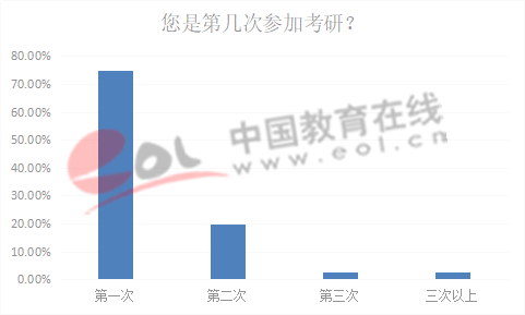 从考生考研次数来看,超过70%的考生是第一次考研,第二次考研占比约20%,三次及以上占比各约3%左右。