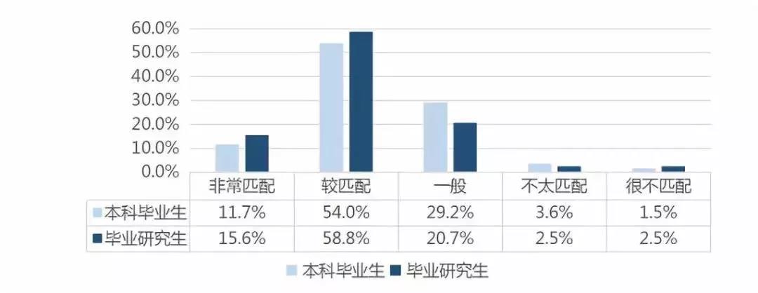 毕业研究生15.6%表示非常匹配,58.8%表示较匹配