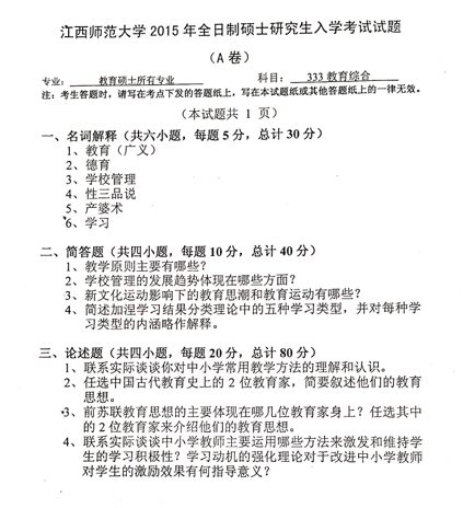 以上是聚创考研网为考生整理的"江西师范大学15-19年333真题汇总"的相关考研信息,希望对大家考研备考有所帮助! 备考过程中如有疑问,也可以添加老师微信juchuang911进行咨询。