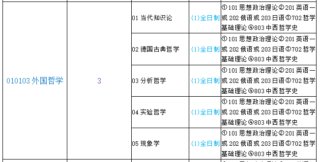 4、2020年厦门大学哲学系010103外国哲学少了儿童哲学的研究方向。