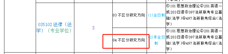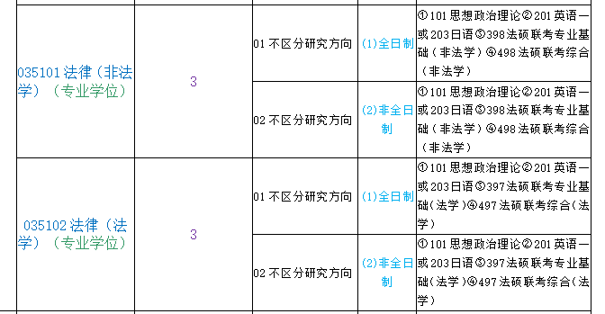 035101法律(非法学)(专业学位) |
