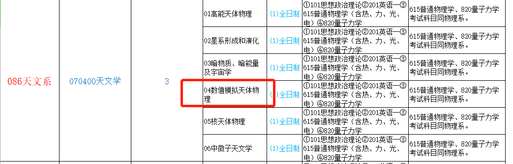 23、2020年厦大天文系070400天文学少了数值模拟天体物理研究方向