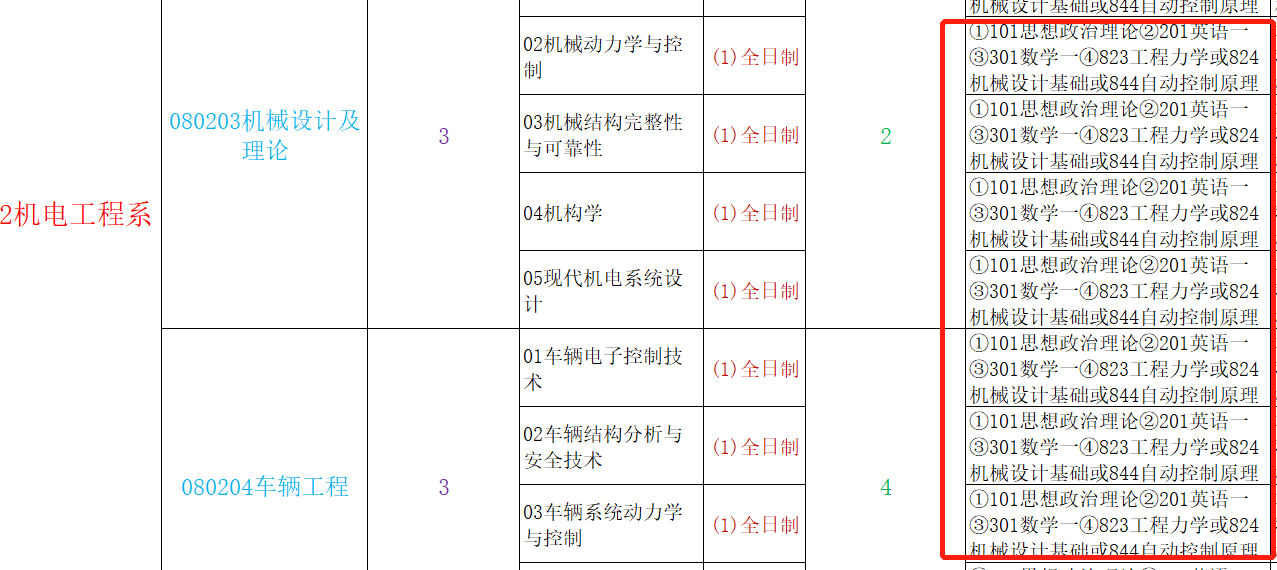 24、2020年机电工程系各个专业的考试科目改为①101思想政治理论②204英语二③302数学二④823工程力学或824机械设计基础或844自动控制原理,2019年是①101思想政治理论②204英语二③302数学二④822微机原理或823工程力学或824机械设计基础。今年考这个学院的同学们要特别注意了!考试科目没有822微机原理,而多了844自动控制原理可供选择。