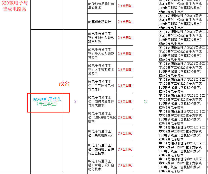 2020年厦大电子工程系新增0809Z2光电工程,考试科目如下;085400电子信息(专业学位)是由2019年085208电子与通信工程(专业学位)改名而来,考试科目不变,但是研究方向增加了很多。