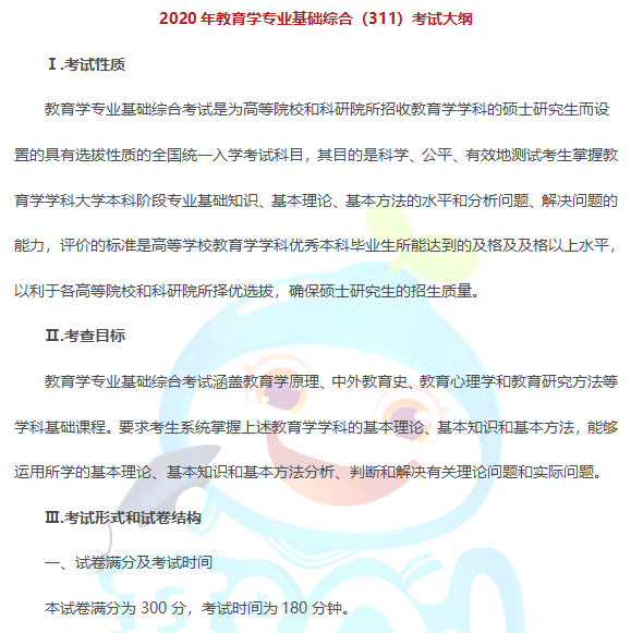 据悉,2020年考研教育学专业基础综合考试大纲(311)原文内容已公布,聚创考研信息网小编为大家整理如下: