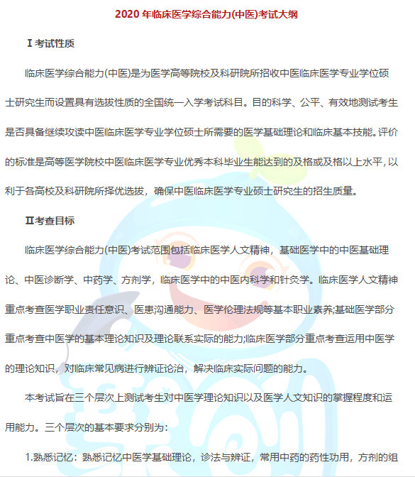 完整版内容请点击链接下载附件查看:2020年临床医学综合能力(中医)考试大纲