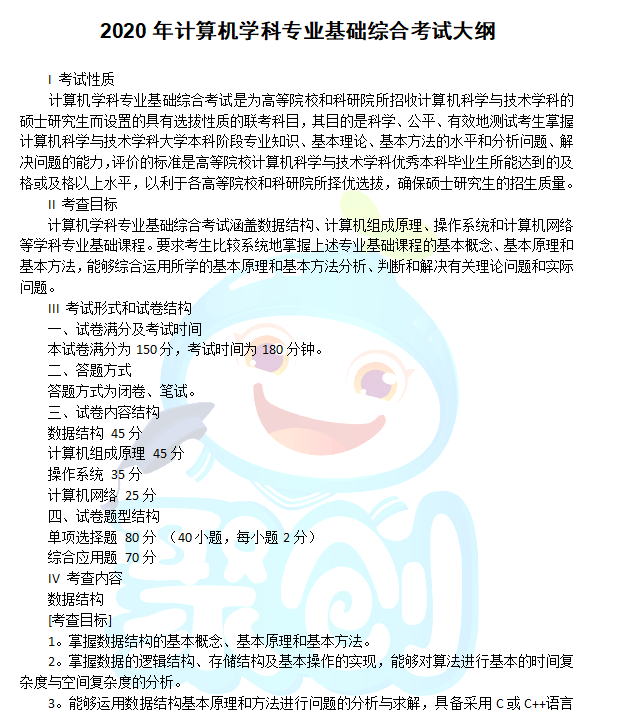 完整版附件下载:2020年计算机学科专业基础综合考试大纲.pdf