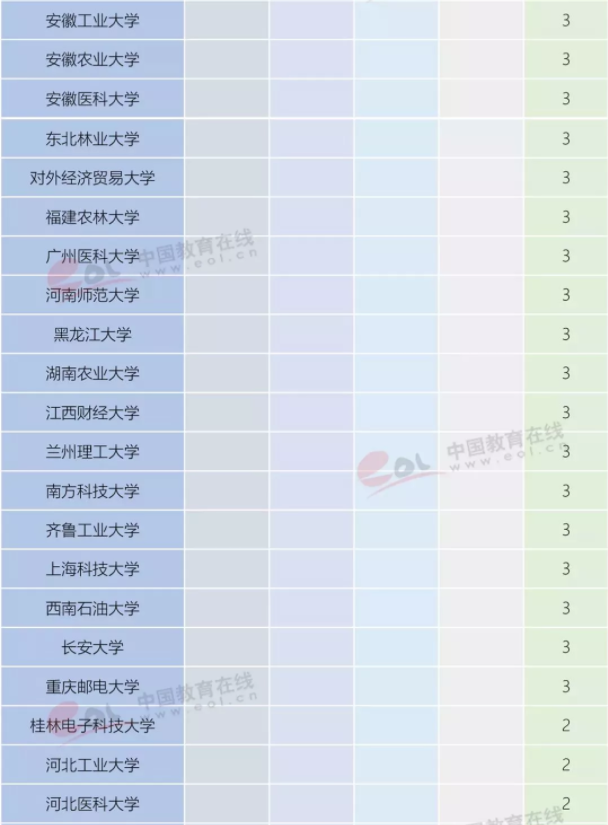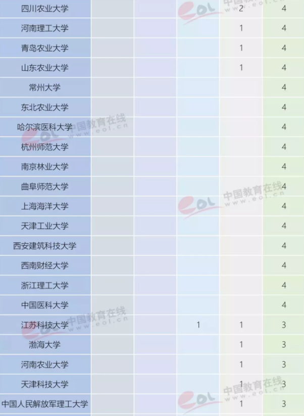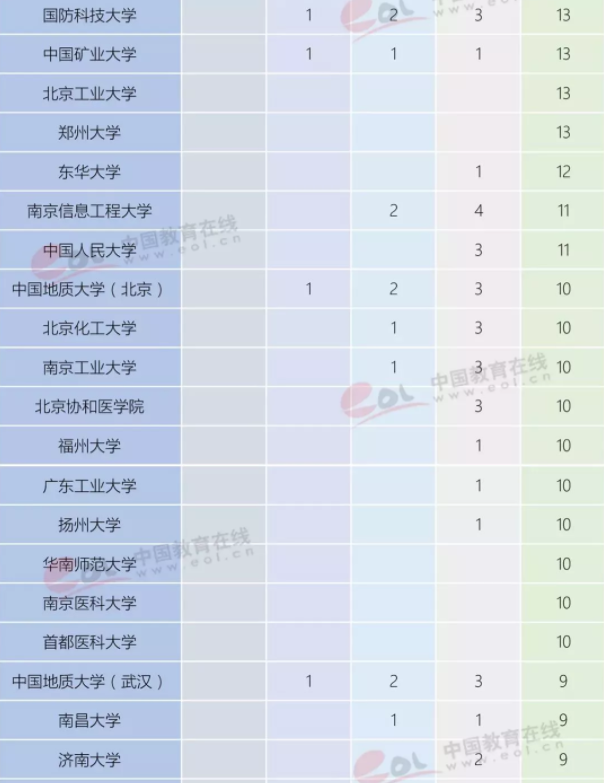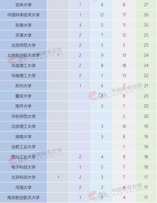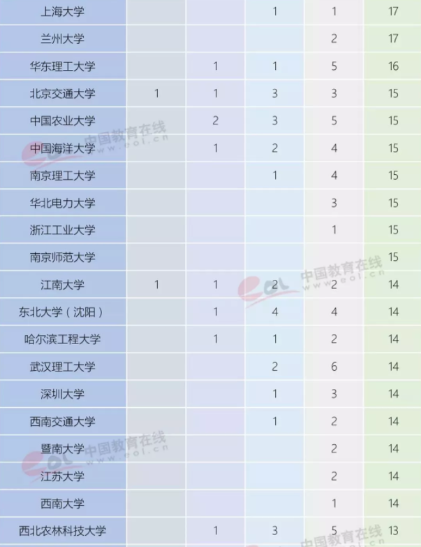 从中国内地高校的上榜学科分布数量来看,浙江大学是上榜学科次数最多的高校,共计46个学科上榜。清华大学、北京大学、上海交通大学和中山大学分别以44次、43次、41次和41次上榜数排在全国前五。
