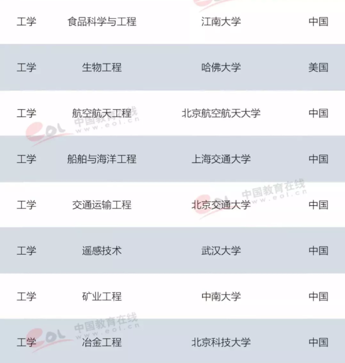 其中江南大学的食品科学与工程和中南大学的矿业工程是首次占据世界第一。