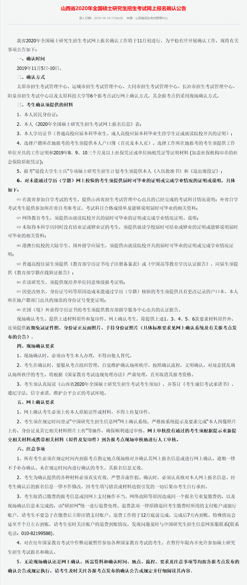 1、考生报名前要认真阅读教育部《2020年全国硕士研究生招生工作管理规定》《2020年全国硕士研究生招生考试公告》《山西省2020年全国硕士研究生招生考试网上报名公告》以及考点和招生单位发布的《网报公告》。