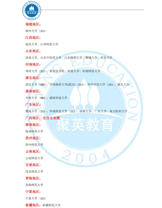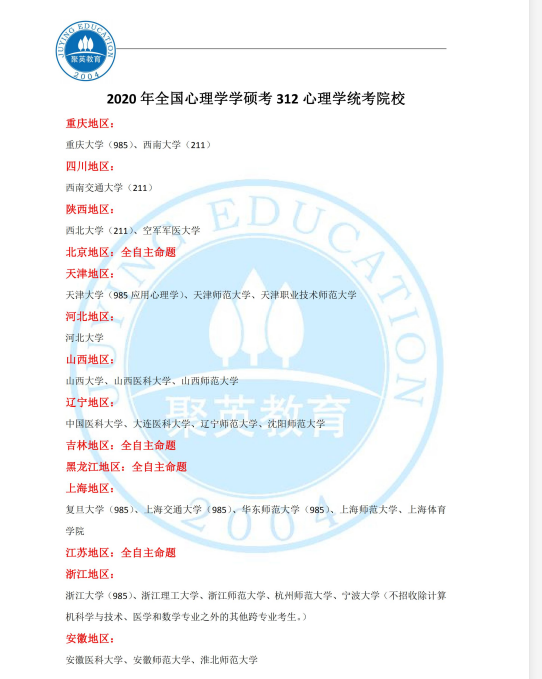 聚创考研信息网小编整理了2020考研心理学学硕312及自命题学校地区,希望能帮助到大家~