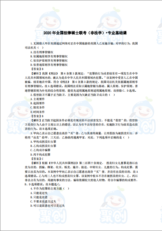 以上是聚创考研网为考生整理的"【对答案】2020年考研法律硕士(非法学)真题及答案与解析"的相关考研信息,希望对大家考研备考有所帮助! 备考过程中如有疑问,也可以添加老师微信juchuang911进行咨询。