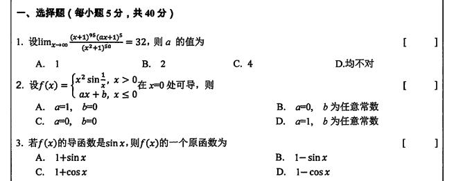 完整版请下载附件:2019年中山大学621一元微积分考研真题(完整版)