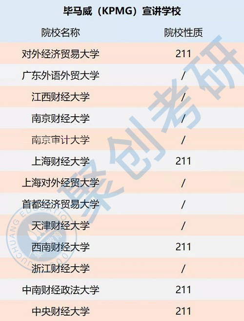四大招聘对象通常是国内较好的985、211的本科/研究生,或者是当地知名财经院校学生。有一点需要注意,如果四大的招聘单位是在北京的话,那么对外经贸、央财、首经贸、北工商(四大审计的底线)都有机会;如果在华南地区,中山大学、暨大、厦大、中南财经、西南财经等都有机会;相应的,如果招聘单位在上海,上财、上外都是很有机会进入审计和咨询部门的。