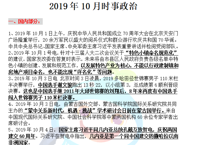 以上是聚创考研网为考生整理的"2020考研政治:2019年10月国内外重大时事政治汇总"的相关考研信息,希望对大家考研备考有所帮助! 备考过程中如有疑问,也可以添加老师微信juchuang911进行咨询。