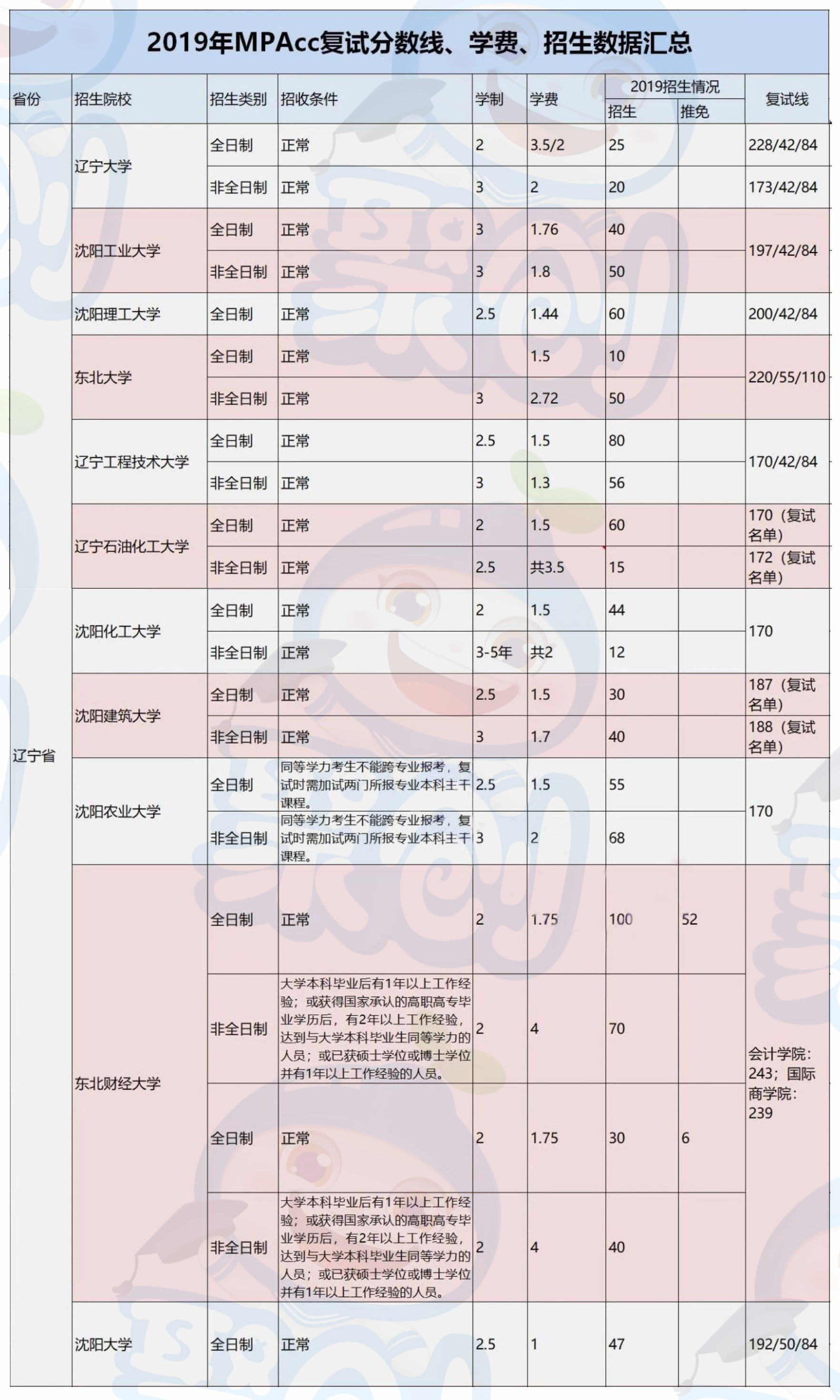 以上是聚创考研网为考生整理的"【辽宁省】2019年高校会计硕士考研分数线、学费、招生情况分析"的相关考研信息,希望对大家考研备考有所帮助! 备考过程中如有疑问,也可以添加老师微信juchuang911进行咨询。