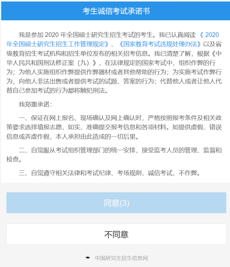 再次是阅读“考生诚信考试承诺书”,点击同意后进入下一步