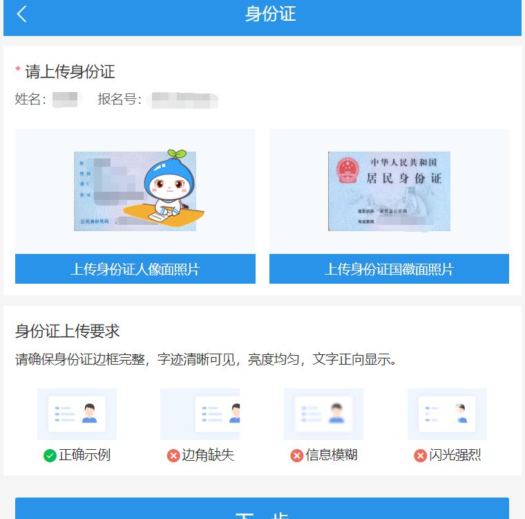 ③本人身份证原件正反面照:分正反面两张上传,请确保身份证边框完整,字迹清晰可见,亮度均匀