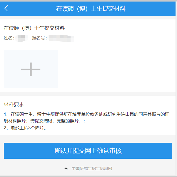 报考“退役大学生士兵专项硕士研究生招生计划”的考生还应提交本人《入伍批准书》和《退出现役证》原件的照片;