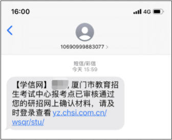 厦门市教育招生考试中心报考点的确认网址为:https://yz.chsi.com.cn/wsqr/stu/