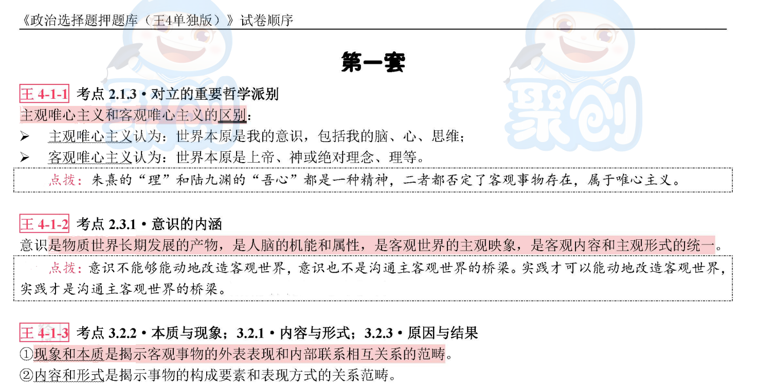 完整版请下载附件:【聚创考研】2020考研政治王4选择题押题库(王4单独版)