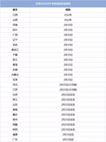 让我们来看看2019年各省市考研成绩查询时间