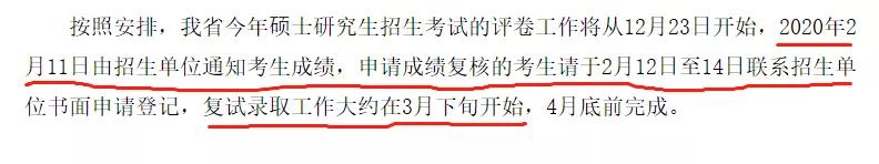 四川省教育考试院:我省今年硕士研究生招生考试的评卷工作将从12月23日开始,2020年2月11日由招生单位通知考生成绩,申请成绩复核的考生请于2月12日至14日联系招生单位书面申请登记,复试录取工作大约在3月下旬开始,4月底前完成。