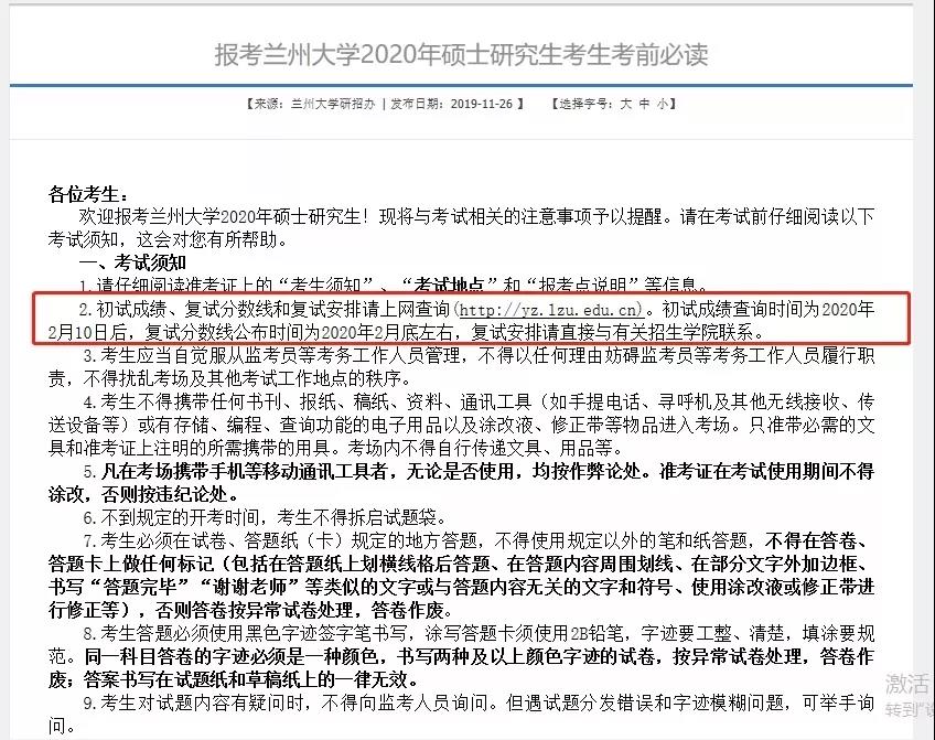 兰州大学公布了初试成绩查询时间为2月10日后!