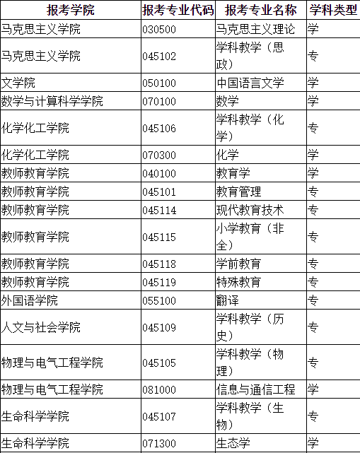天水师范学院2020年硕士研究生各专业招生分专业计划表