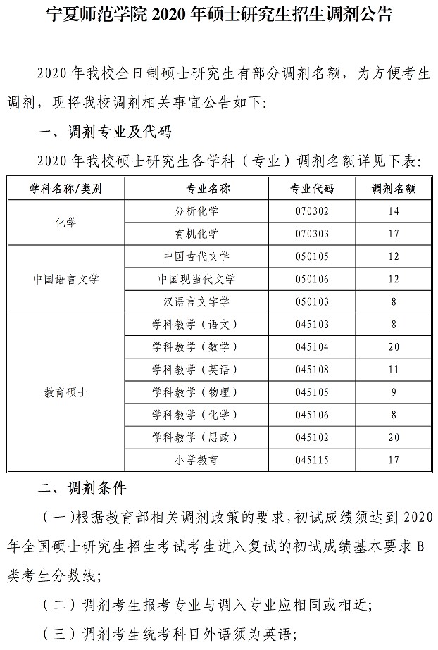 2020年我校全日制专业学位教育硕士、工程硕士、中国语言文学专业均有调剂名额。为方便考生调剂,现将我校2020年调剂相关事宜公告如下: