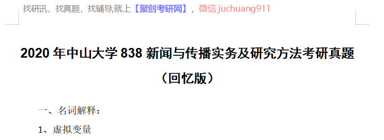 完整版请下载附件:2020年中山大学838新闻与传播实务及研究方法考研真题(回忆版)