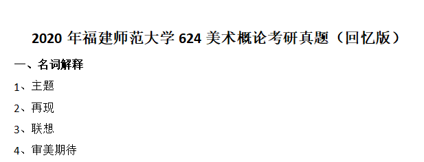 完整版请下载附件:2020年福建师范大学624美术概论考研真题(回忆版)