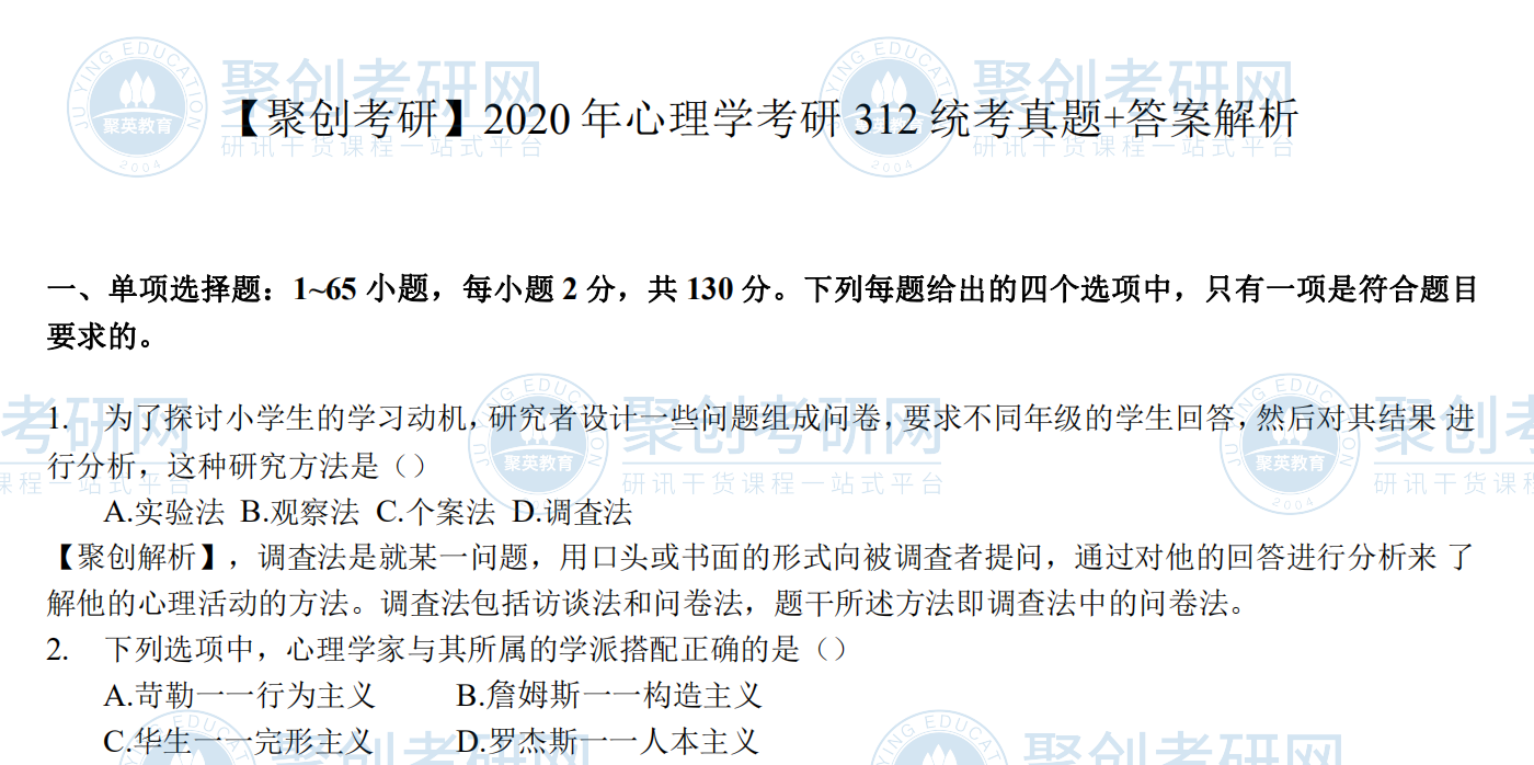 完整版请下载附件:【聚创考研】2020年心理学考研312统考真题+答案解析