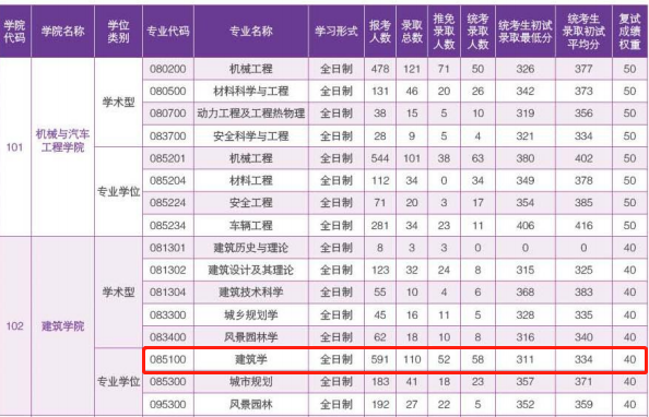 (3)2017年建筑学新增了非全,报考人数57人,但是录取人数为0人,18-19年都没有出现招非全日制的情况,所以建筑学会不会招非全还是未知数,报考需谨慎!