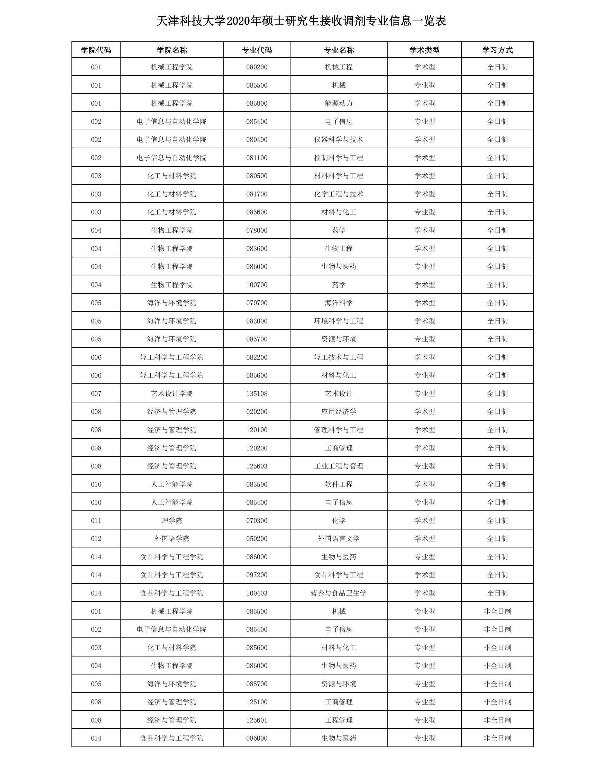 据悉,2020年天津科技大学硕士研究生调剂信息已公布,聚创考研网小编整理如下: