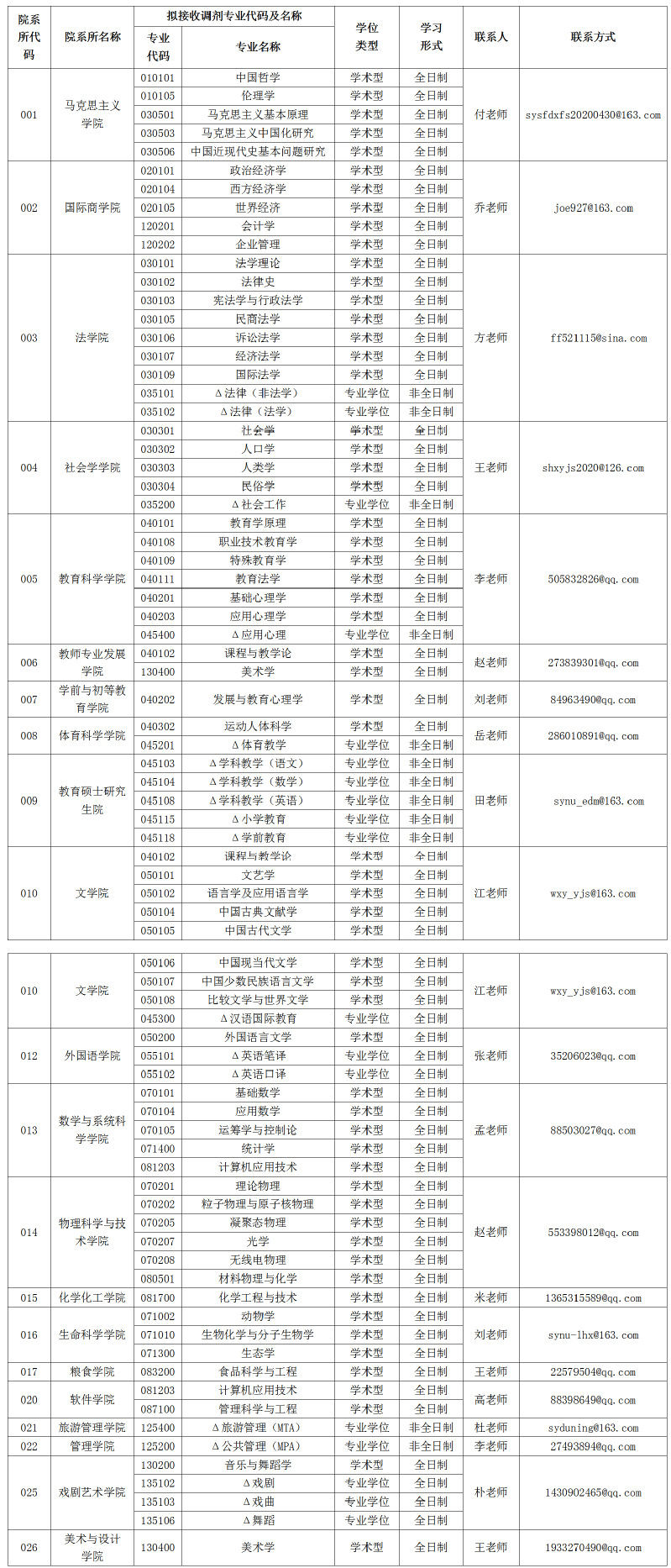 2020年我校拟接收调剂专业及调剂咨询方式详见下表(表中专业名称前带“Δ”为专业学位):
