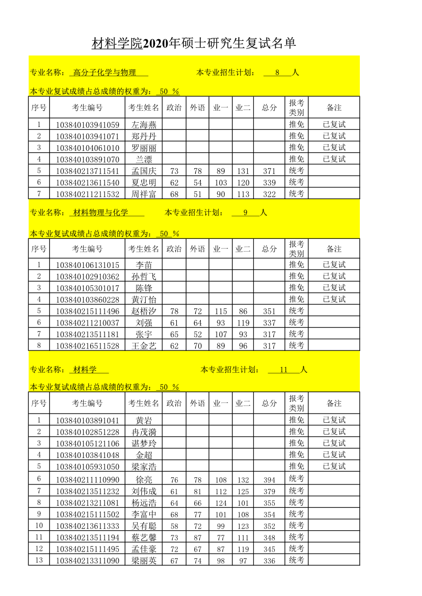以上是聚创考研网为考生整理的"厦门大学材料学院2020年硕士研究生复试名单(不含调剂生)"的相关考研信息,希望对大家考研备考有所帮助!